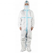 The White Laminated Blue Stripe Coverall is a disposable safety workwear made of high quality laminated material. Provides barrier protection against light liquid splashes, hazardous dusts and certain biological contaminants. Its weight is 55 gr.